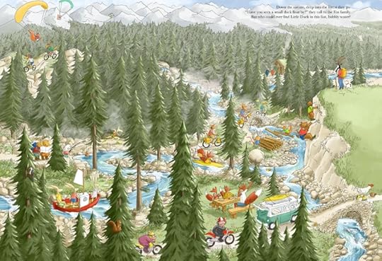 All Along the River is a delightful mashup of a somewhat Beatrix Potter illustrative style meets a lightweight Where's Waldo, with a storyline something like "Are You My Mother"?