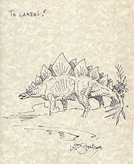 I recently found this beautifully-printed book at our used bookstore, which I'm only pointing out because it also includes an original hand-drawn stegosaurus hastily but beautifully sketched on the inside flyleaf, signed and dated with the note "To Laken!"