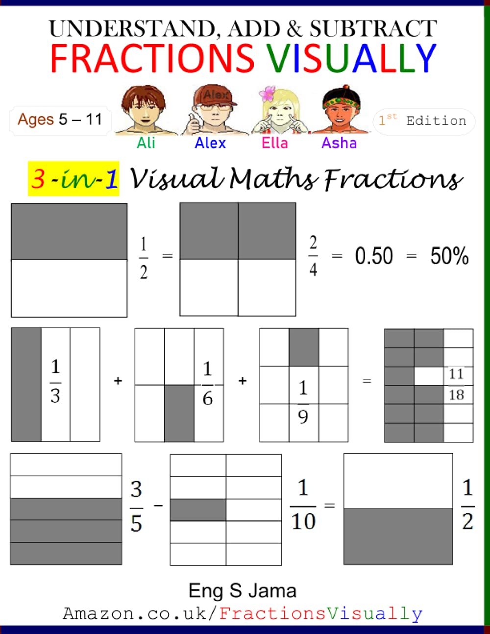 The only visual fractions book you need to UNDERSTAND, ADD & SUBTRACT fractions with same and different denominators.