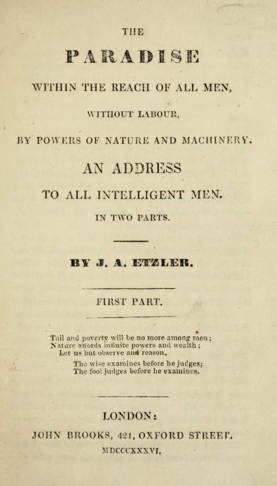 The Paradise Within the Reach of All Men, Without Labour, by Powers of Nature and Machinery; An Address to All Intelligent Men