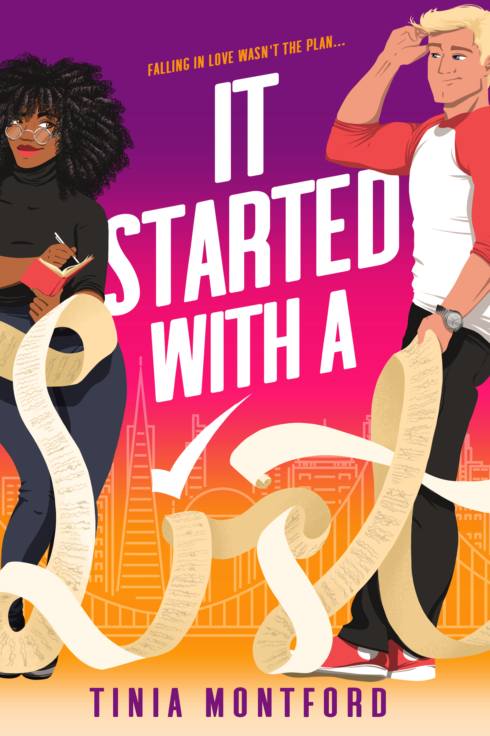 Check mark’s the spot in this new adult romance from debut author Tinia Montford. More than just a pretty cover, It Started with a List quickly reveals itself to be so much more beneath this brightly coloured mask.