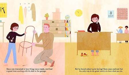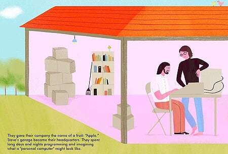 The Steve Jobs installment in the series tells of how Steve was adopted and how even as a kid he liked figuring out how stuff worked but also had a more artistic design-oriented side. The book focused more on the time before he founded Apple, but in general the focus of these books is about how the person grew up and followed their dreams. I recommend this picture book for anyone with kids interested in computers or technology.