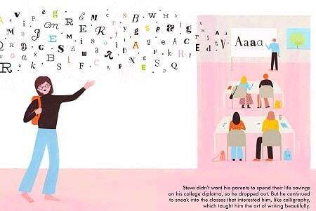 In high school, Steve made friends with Steve Wozniak, ‘Woz’, often referred to now as ‘the other Steve’, an electronics enthusiast with engineering talent. But going on to college was not for Steve Jobs. Steve just sat in on a few classes that interested him, like calligraphy, with its artistic letters.