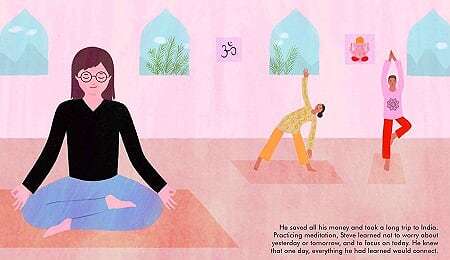 Then he took off to India to learn how to meditate and find himself (my words). “He knew that one day, everything he had learned would connect.”