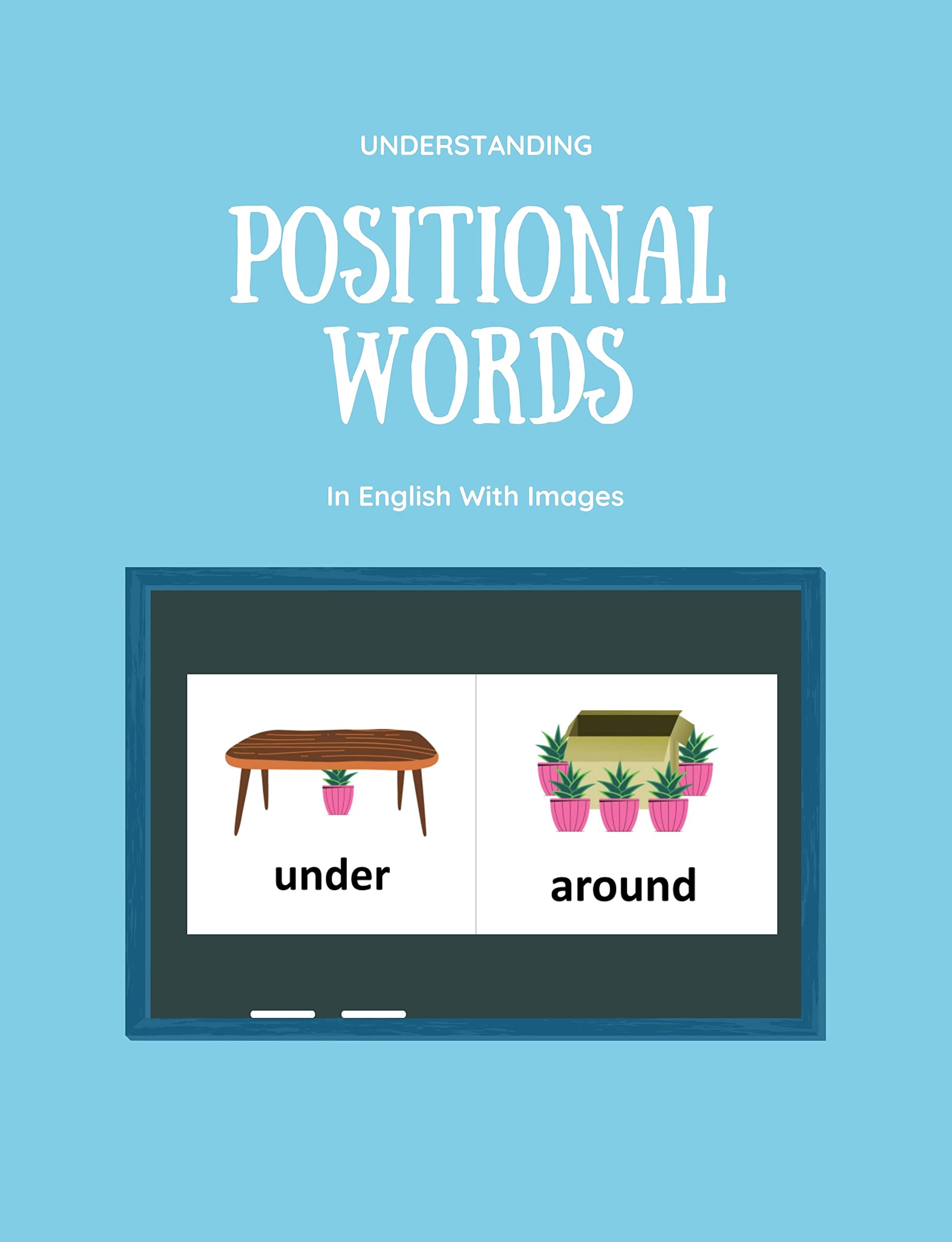 Understanding Positional Words In English With Images: features a variety of positional language vocabulary and accompanying images including ‘above’, ‘below’, ‘inside’ and ‘outside’.