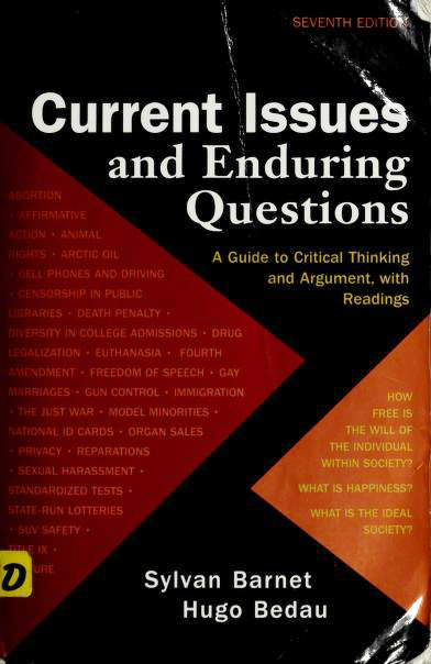 The book is in two parts: the first lays down the elements of citical thinking and the art of dissecting an argument, and the second is an excellent selection of readings which offer both pro and con views on a wide variety of social and moral subjects. I found myself continually referring to the second section of the book, because the readings selected are compelling, and very well written. They include modern writers, as well as the best writings of past authors who explore contemporary issues of their day. That they continue to be "hot" issues today speaks to the continuing struggle we have with certain kinds of issues.