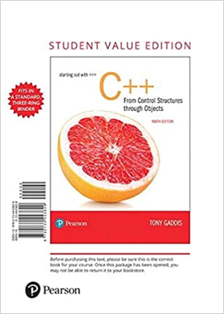 NOTE Before purchasing, check with your instructor to ensure you select the correct ISBN. Several versions of Pearson's MyLab & Mastering products exist for each title, and registrations are not transferable. To register for and use Pearson's MyLab & Mastering products, you may also need a Course ID, which your instructor will provide. Used books, rentals, and purchases made outside of Pearson If purchasing or renting from companies other than Pearson, the access codes for Pearson's MyLab & Mastering products may not be included, may be incorrect, or may be previously redeemed. Check with the seller before completing your purchase. For two-semester courses in the C++ programming sequence, or an accelerated one-semester course. This package includes MyLab Programming. A clear and student-friendly way to teach the fundamentals of C++ Starting Out with From Control Structures through Objects covers control structures, functions, arrays, and pointers before objects and classes in Tony Gaddis's hallmark accessible, step-by-step presentation. His books help beginning students understand the important details necessary to become skilled programmers at an introductory level. Gaddis motivates the study of both programming skills and the C++ programming language by presenting all the details needed to understand the "how" and the "why"-but never losing sight of the fact that most beginners struggle with this material. His approach is gradual and highly accessible, ensuring that students understand the logic behind developing high-quality programs. As with all Gaddis texts, clear and easy-to-read code listings, concise and practical real-world examples, and an abundance of exercises appear in every chapter. Updates to the 9th Edition include revised, improved problems throughout and a new chapter featuring completely rewritten and expanded material on the Standard Template Library (STL). Personalize learning with MyLab Programming . MyLab(TM) Programming is an online learning system designed to engage students and improve results. MyLab Programming consists of programming exercises correlated to the concepts and objectives in this book. Through practice exercises and immediate, personalized feedback, MyLab Programming improves the programming competence of beginning students who often struggle with the basic concepts of programming languages. 0134544846 / 9780134544847 Starting Out with C++ from Control Structures to Objects Plus MyProgrammingLab with Pearson eText -- Access Card Package, 9/e Package consists Students can use the URL and phone number below to help answer their //247pearsoned.custhelp.com/app/home 800-677-6337