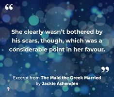 Jackie Ashenden writes very well and I enjoyed The Maid the Greek Married. I do think she could have picked a different title as the current title lets the book down. I suppose it’s because I see this as more than just a typical romance with smut; I saw strength, I saw respect, I saw a good balance of so much with the characters Ashenden wrote about, and that’s why I wish she had picked a stronger title. I’ll definitely look at other books by this author because I enjoyed her writing style.