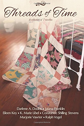 THREADS OF TIME—a collection of seven Christian romantic novellas about a very special quilt—one intended to grace the marriage bed of a young couple but never fulfilling its original purpose—which travels through many hands and decades, lending comfort to its temporary owners before being passed on. A Thimbleful of Peace by Constance Shilling Stevens -- A woman with nothing left except the quilt intended to grace her marriage bed cares for the children of a riverboat captain whose gruff façade conceals a tender heart. Tattered Hopes by Ralph Vogel -- Robert and Molly Tillman’s dreams for a new life in Nebraska are shattered by tragedy. Will they find the courage to repair the rending of the love they thought would last forever? A Night With No Stars by Jalana Franklin -- A widower and a local postmistress in the small town of Valentine, Nebraska, struggle with the notion that love can’t mend a broken heart … or can it? Mending the Widow’s Heart by Marjorie Vawter -- A widowed mother struggles with believing love is for her. A circuit-riding preacher longs to settle down in one place with a family and church of his own. A Thread of Hope by Darlene A. Dodds -- A writing assignment—interviewing a Titanic survivor—becomes pleasant when Paul meets Shona. But after he loses her trust, will he be able to regain it? Frayed by Eileen Key -- Will a jaded Vietnam veteran’s despair overshadow a young woman’s hope? A Patchwork Promise by K. Marie Libel -- Antiques dealer James obtains a tattered quilt from one of Sarah's estate auctions. Will the restoration of the quilt ultimately lead to the restoration of Sarah's heart...and perhaps, even, inspire new love?"