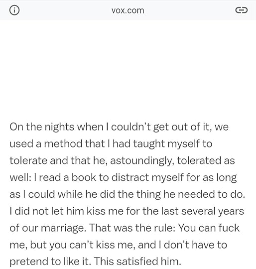 Otherwise the book hodge podge of vaguely anti-leftist stuff that, if you’re one of the converted, you can feel free to enjoy as a bunch of authors phone it in. If you relish being told how bad academia and government is by a guy who appears to have only meaningfully worked in academia or government, then Angelo Codevilla’s your man. Janice Fiamengo’s got your back if the old ball and chain isn’t keeping up her side of the equation, as she snidely complains about a 2018 Vox article that unhappy consensual sex that felt like assault in a marriage actually isn’t sexual assault: