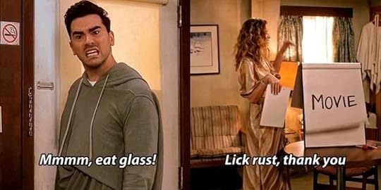 What I Liked Most About This Book: - The sex scenes were out of this world, give you all the tingly feelings, inspire you to try things. I had been seriously considering DNFing the book when the scene where Mira has a migraine happens and in a disoriented state says to Lucien "tie me up and make me beg, or make me your sex slave for a day". Like - yes queen, go off with your praise kink. And when they finally have sex it is exactly that feeling that I mentioned of wanting them to almost punish each other so much that they can't help but fuck. Lot of tingly feelings when Mira asks Lucien to destroy her and he responds "with pleasure". Not only that, but who doesn't take solace in kinky words written on dead trees AKA erotic romance novels. When they act out a certain scene and he makes her "his wife in every way" - love love love.