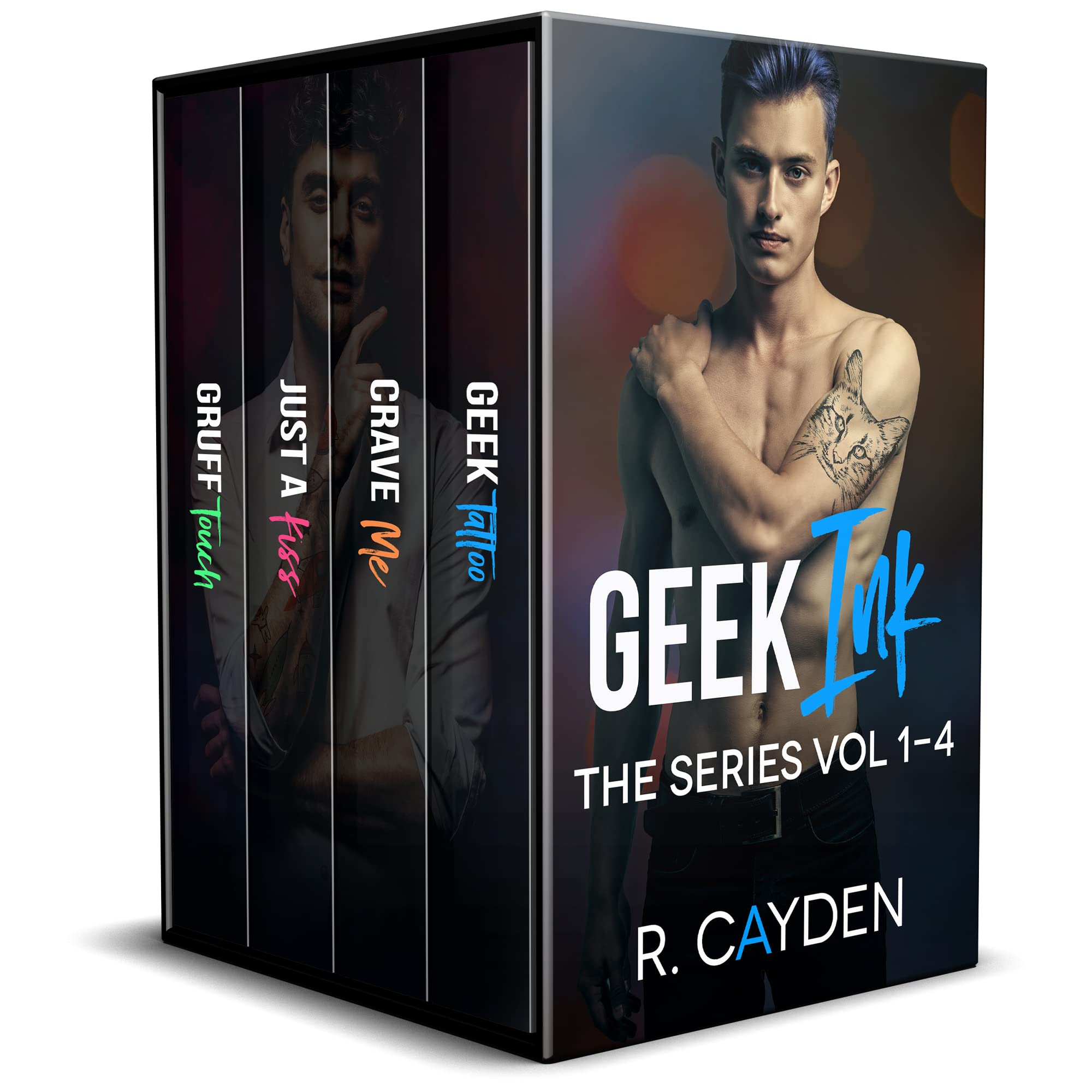 There are four great books in one set by R. Cayden. "Geek Tatoo" has Matty and Stone with both so sweet and tender. "Crave Me" has Milo looking for love and Joey determined to isolate himself rather then endanger Milo. "Just a Kiss" is about Rafael and Alexander who have been best friends forever until Rafael wakes up and realizes he loves Alexander. And my favorite "Gift of Touch" has Drew and his grumpy bear love, Ceasar. All the books involve hunky, sexy tatoo artists and the gentle, geeky guys they adore. There is angst in every story and lots of undeniable adoration, want, and need. There is plenty of steamy times and I love to see these strong, silent tough guys melt for their sweet guys. Very enjoyable reads for everyone. I received a copy of this book from Gay Romance Reviews and this is my honest opinion.