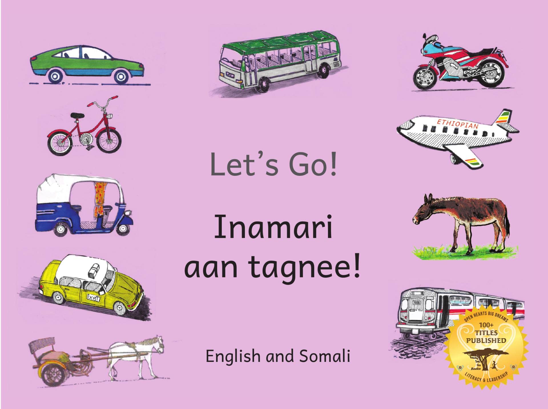 Whether you take a taxi, a mule or a bajaj, there are lots of ways to travel in Ethiopia. What’s the best way to get to the mountains, mosque, church or school? What if we want to go somewhere far away or just down the street? Detailed, playful illustrations capture the beauty and diversity of Ethiopian culture as we follow pairs of Ethiopian children as they navigate their world by car, train and bicycle. Side by side text in Somali and English support emerging bilingual readers as they build vocabulary and develop fluency, while engaging illustrations capture young attentions. Ready, Set, Go! books are part of Open Hearts Big Dreams larger mission of increasing literacy in indigenous Ethiopian languages like Amharic, Tigrinya and Afaan Oromo.