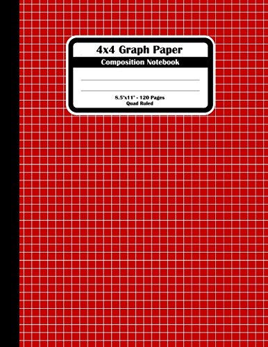 4x4 Graph Paper Composition Notebook. Quad Rule graph paper, Also known as 4x4 graph paper. Book has four squares per inch, Each square measures .25 x .25 inches.  Great for math or science and much more. Great for younger and older children (high school and college age may prefer 5x5).  Uses Description Alternate Quadrille Paper, Coordinate paper, grid paper, squared paper or math paper.