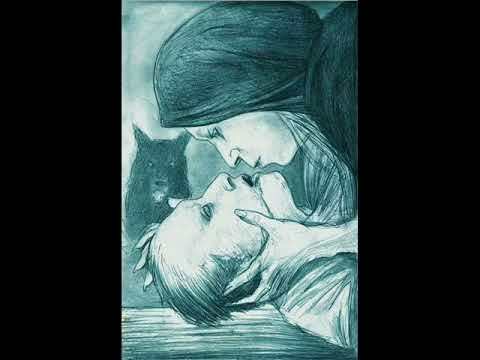 "Slowly she leaned over him, pressing her cold lips to his dead ones."