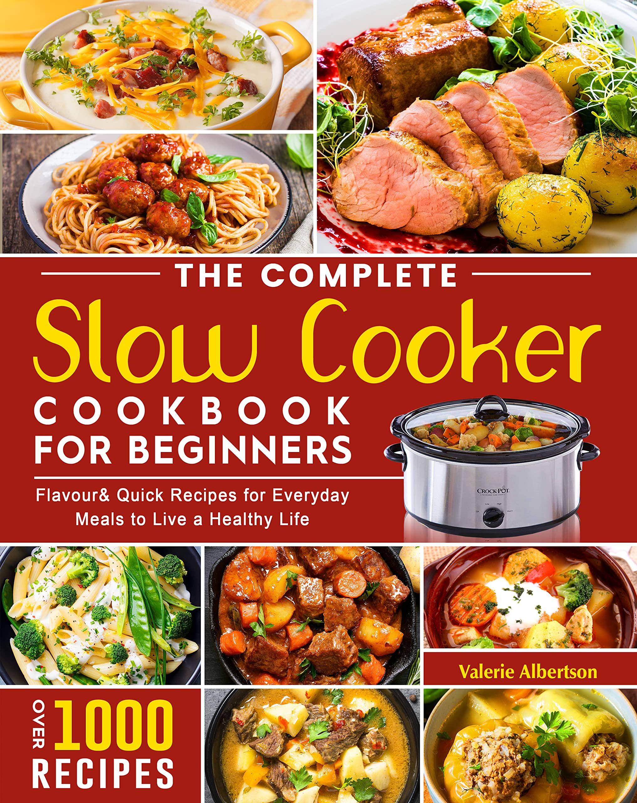 The Complete Slow Cooker Cookbook for Beginners: 1000 Days Flavour& Quick Recipes for Everyday Meals to Live a Healthy Life by Valerie Albertson Book was renamed to this: The Complete Crock Pot Cookbook for Beginners 2023: 1200 Super Easy, Delicious & Healthy Crockpot Recipes for Everyday Meals to Live a Healthy Life Same ISBN # for both. This bok starts with TOC where recipes are listed in categories of meals and food groups. Each recipe starts with a title, servings, cook times. Not every recipe starts at the top of a new page. List of ingredients and you should be able to substitute for your healthier dietary needs: low fat, low sodium, low sugar and fresh vs canned items. Directions are given and there is some nutrtional information per serving: calories, protein, carbs, fat, fiber, cholesterol, sodium and potassium. Some recipes have nutritional info for only calories, fiber, protein and carbs, not in same format as other recipes, like they are copied from a different source. There are NO pictures.