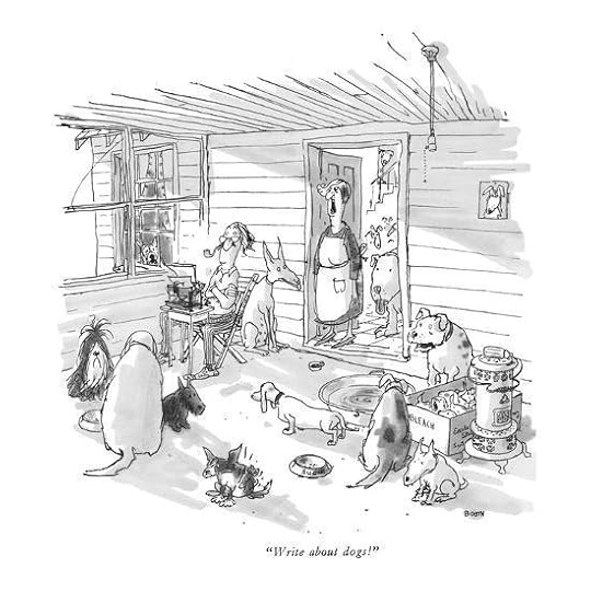 Unlike the other two collections, there was no trouble filling this one with cartoons that feature dogs. (Or dogs AND cats. Plus always, of course, humanoids.) Quite a few depict a writer or a reader talking to a dog about what he/she is writing or reading about. Good stuff! A natural fit for Goodreads peeps.
