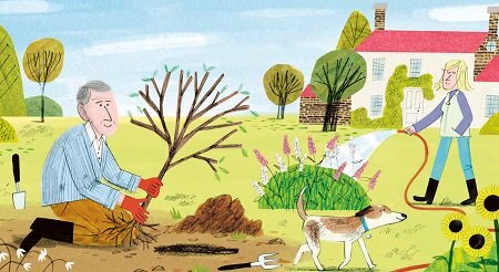 This is followed immediately by Camilla. “ When Charles married Camilla, his closest friend for thirty-five years, they bought a farm in Wales, far from any palace. There, he planted trees, talked to his plants, and ate organic food, inspiring others to live in harmony with nature, too.”