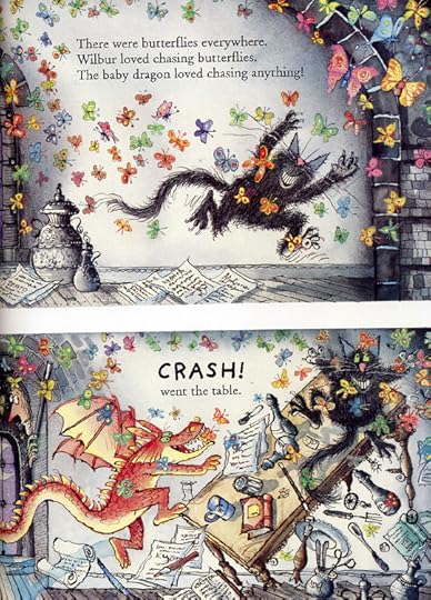 This is another charming Winner & Wilbur book. I enjoy both characters. The story of a baby dragon finding its way into Winnie & Wilbur’s house at night, but lost from its mother is cute and amusing, though a bit thin. I love Winnie’s solutions to problems though. What to do about the smoke/flames coming out of the dragon’s mouth, the baby dragon’s innocent play that is destructive nonetheless, finding the mother dragon? The spell to make butterflies come out of the dragon’s mouth was so cute.