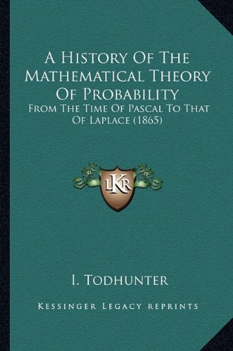 ""A History of the Mathematical Theory of Probability"" is a book written by Isaac Todhunter and first published in 1865. The book provides a comprehensive account of the development of probability theory from the time of Blaise Pascal to Pierre-Simon Laplace. It covers the contributions of various mathematicians, including Fermat, Huygens, Bernoulli, Bayes, and Laplace, and their respective theories and applications. The book is divided into three parts, with the first part discussing the early history of probability theory, the second part focusing on the development of the theory of errors, and the third part discussing the theory of probability as applied to the natural sciences. The book is a valuable resource for anyone interested in the history of mathematics, probability theory, and the evolution of scientific thought.This scarce antiquarian book is a facsimile reprint of the old original and may contain some imperfections such as library marks and notations. Because we believe this work is culturally important, we have made it available as part of our commitment for protecting, preserving, and promoting the world's literature in affordable, high quality, modern editions, that are true to their original work.