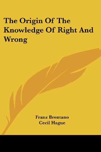 ""The Origin of the Knowledge of Right and Wrong"" is a philosophical work by Franz Brentano that explores the fundamental question of how humans come to know what is right and wrong. Brentano argues that moral principles are not derived from empirical observation or reason alone, but rather from a special kind of intuition that is inherent in human consciousness. He suggests that this intuition is based on a kind of ""inner perception"" that allows us to recognize the value of certain actions and behaviors. The book also delves into the nature of morality itself, examining various ethical theories and their implications for understanding the origins of moral knowledge. Written in clear and accessible language, ""The Origin of the Knowledge of Right and Wrong"" is a thought-provoking exploration of one of the most fundamental aspects of human experience.This scarce antiquarian book is a facsimile reprint of the old original and may contain some imperfections such as library marks and notations. Because we believe this work is culturally important, we have made it available as part of our commitment for protecting, preserving, and promoting the world's literature in affordable, high quality, modern editions, that are true to their original work.