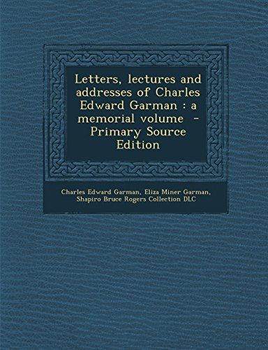 Letters, lectures and addresses of Charles Edward Garman: a memorial volume