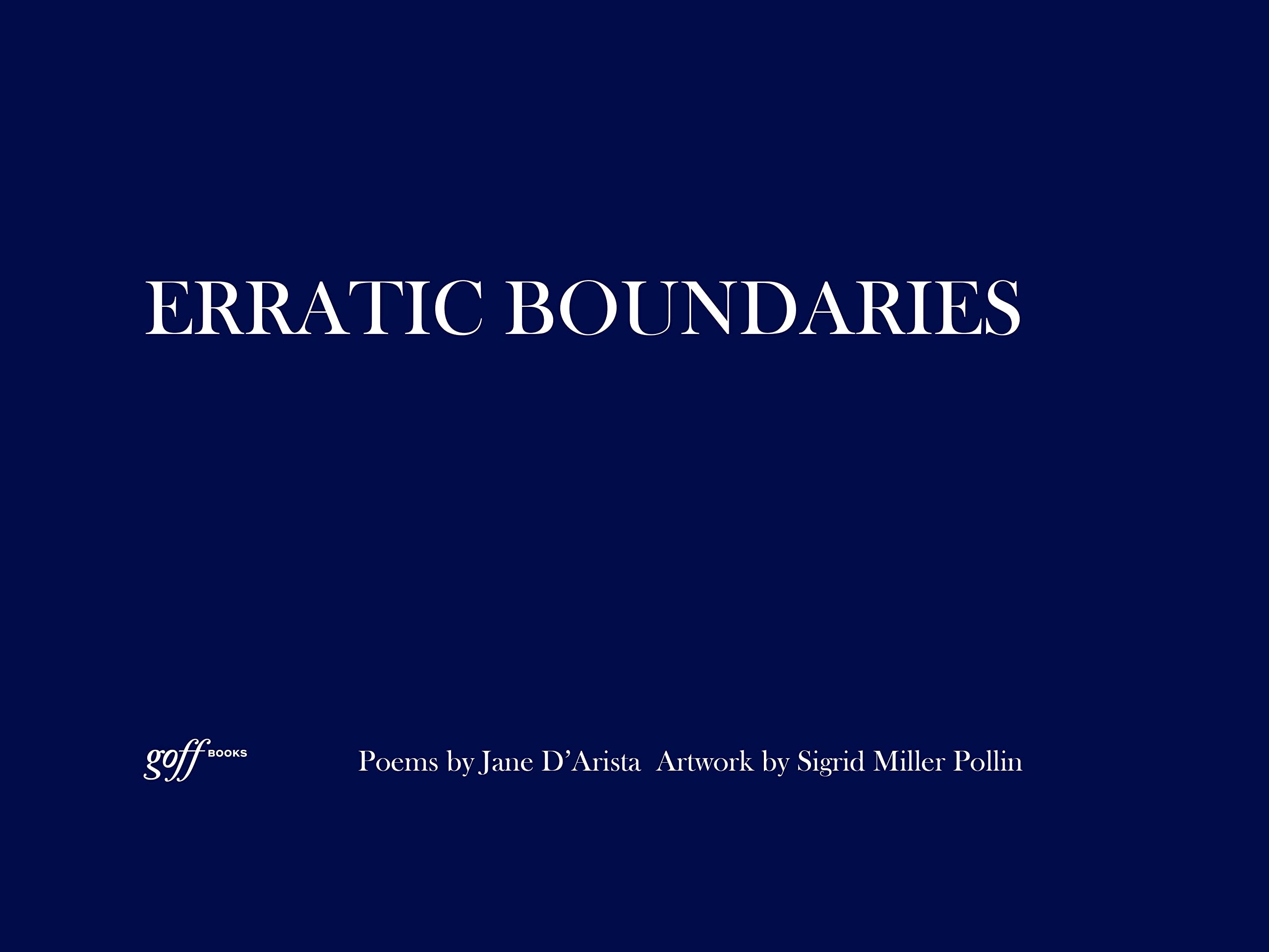 Erratic Boundaries is a collection of ten pen and ink drawings by architect and artist Sigrid Miller Pollin, coupled with ten ekphrastic poems by poet and economist Jane D’Arista. The drawings pull the viewer into fanciful natural and constructed visual moments. The book title is embedded in Poem IV. It invites the reader into an osmotic ricochet from poem to drawing. Here, sky rises like a canopy above erratic boundaries where land and water meet- boundaries so elemental we borrow their irregular connections to name the ragged edges of human birth, death, youth, age and what we call love and loss.