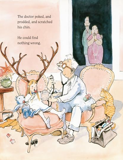 This girl named Imogene wakes up, finding that she has grown these massive antlers. Every time her mom sees her, she basically faints. They have the doctor come look at her, which, you know, is a reasonable thing. The first part of the story is basically the family trying to figure out why it happened. Her brother says, according to the encyclopedia, that she has turned into a rare form of miniature elk, which causes the mother to faint again.