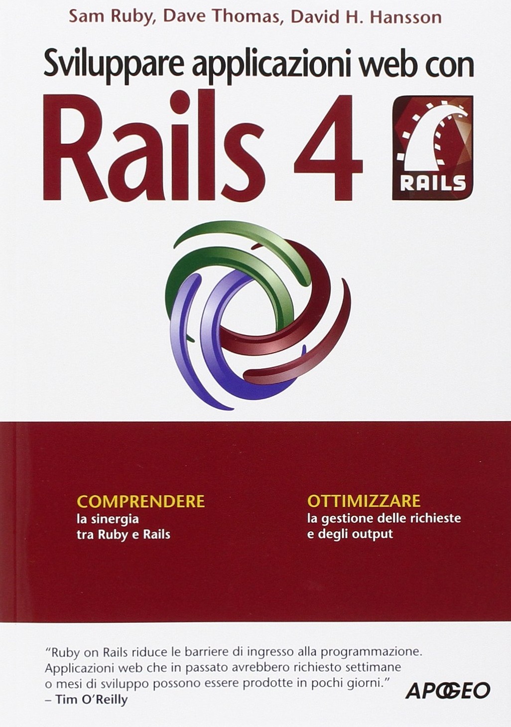 Sviluppare applicazioni web con Rails 4 lità professionale. La versione 4 ha apportato centinaia di miglioramenti, incluse nuove API e ottimizzazioni delle prestazioni. Questo libro - arrivato alla quinta edizione in lingua inglese e consigliato dal Rails core team - si evolve insieme al linguaggio Ruby e si organizza in modo da essere utile sia per gli sviluppatori in cerca di una guida passo passo per creare la prima applicazione, sia per chi desidera scoprire Rails in profondità. Lo sviluppo di un'applicazione reale e funzionante è il filo conduttore attraverso cui il lettore viene accompagnano nell'apprendimento, fino agli aspetti meno noti e più innovativi del framework. Nel testo non mancano indicazioni e approfondimenti dei concetti chiave del linguaggio Ruby. Gli esempi sono validi per Rails 4.0 e versioni successive e utilizzano Ruby 2.0.