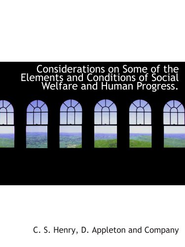 Considerations on Some of the Elements and Conditions of Social Welfare and Human Progress.