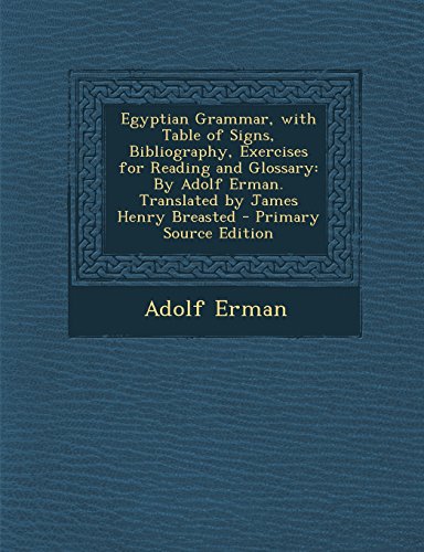 Egyptian Grammar, with Table of Signs, Bibliography, Exercises for Reading and Glossary: By Adolf Erman. Translated by James Henry Breasted