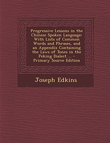 Progressive Lessons in the Chinese Spoken Language: With Lists of Common Words and Phrases, and an Appendix Containing the Laws of Tones in the Peking
