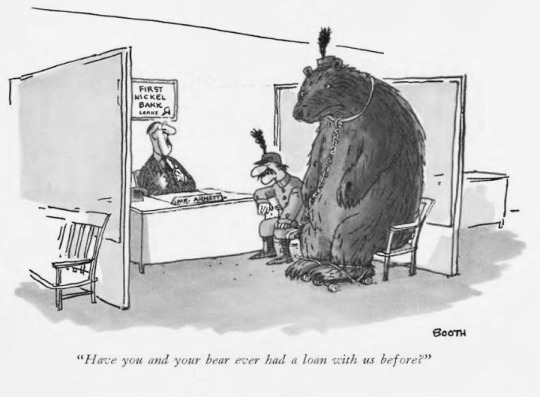 The adjective "off-beat" does not tell a person much about a book of cartoons. This wonderful collection of George Booth's cartoons is ....what ? Off-beat, certainly, but what, then ? Just what drummer Booth hears I find myself powerless to say. Derisive ? Too harsh. Anti-establishmentarian ? Not really. Perhaps "moribund" is the word, moribund but not morbid. He finds delight in old codgers telling their dogs about the adventure they had on the bus watching a grape roll down the aisle. Or a daft older lady giving her dog a pep talk about the imminent arrival to their household of a pussycat. That and the pet dog's expression of incomprehension. ....See ? I told you I found it impossible. How can this be humorous, much less what it is, wickedly hilarious? In the very darkest center of our lonely human condition, Booth finds material for comedy. His are very definition of "New Yorker" cartoons....you have to see them. Everyone ! It's like staring at a naked light bulb and finding it hysterically funny. Do check this one out.