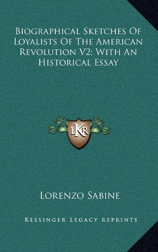 Biographical Sketches Of Loyalists Of The American Revolution V2 is a book that provides detailed accounts of the lives of individuals who remained loyal to the British Crown during the American Revolution. Written by Lorenzo Sabine, the book offers a comprehensive collection of biographical sketches of these loyalists, including their backgrounds, beliefs, and experiences during the war.The book also features an historical essay that provides context for the events of the American Revolution, as well as an analysis of the factors that led some individuals to remain loyal to the British Crown. Sabine's work offers a unique perspective on the American Revolution, shedding light on the experiences and motivations of those who remained loyal to Britain during this tumultuous time in American history.Overall, Biographical Sketches Of Loyalists Of The American Revolution V2 is an informative and engaging read for anyone interested in the history of the American Revolution, as well as those interested in the lives of individuals who played a significant role in this important period of American history.In Two Volumes.This scarce antiquarian book is a facsimile reprint of the old original and may contain some imperfections such as library marks and notations. Because we believe this work is culturally important, we have made it available as part of our commitment for protecting, preserving, and promoting the world's literature in affordable, high quality, modern editions, that are true to their original work.
