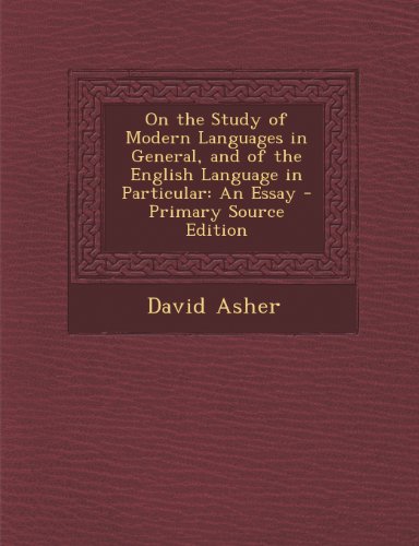 On the Study of Modern Languages in General, and of the English Language in Particular: An Essay