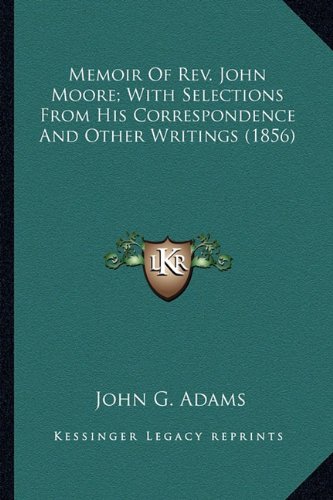 The Memoir of Rev. John Moore, with Selections from His Correspondence and Other Writings is a book written by John G. Adams in 1856. It is a biographical account of the life of Reverend John Moore, a prominent figure in the Presbyterian Church in the United States during the 19th century. The book includes a detailed description of Moore's life, from his childhood to his ministry and his contributions to the church. It also includes a selection of his correspondences and other writings, providing readers with an insight into his thoughts and beliefs. The book is an excellent resource for anyone interested in the history of the Presbyterian Church in the United States and the life of one of its most prominent figures.This scarce antiquarian book is a facsimile reprint of the old original and may contain some imperfections such as library marks and notations. Because we believe this work is culturally important, we have made it available as part of our commitment for protecting, preserving, and promoting the world's literature in affordable, high quality, modern editions, that are true to their original work.