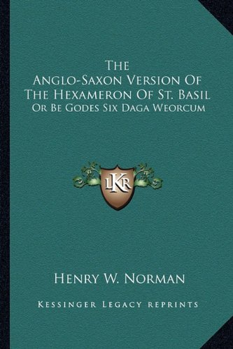 The Anglo-Saxon Version of the Hexameron of St. Or Be Godes Six Daga Weorcum is a book edited by Henry W. Norman. It is a translation of the Hexameron, a theological work by St. Basil, into Old English, also known as Anglo-Saxon. The Hexameron is a series of homilies that explore the creation of the world in six days, as described in the Book of Genesis. This edition includes the original Old English text alongside a modern English translation for comparison. The book is a valuable resource for scholars of Old English literature and early Christian theology.This scarce antiquarian book is a facsimile reprint of the old original and may contain some imperfections such as library marks and notations. Because we believe this work is culturally important, we have made it available as part of our commitment for protecting, preserving, and promoting the world's literature in affordable, high quality, modern editions, that are true to their original work.