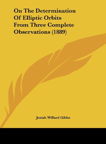 ""On The Determination Of Elliptic Orbits From Three Complete Observations"" is a scientific book published in 1889 by Josiah Willard Gibbs. The book focuses on the mathematical principles behind determining the elliptical orbits of celestial bodies based on three complete observations. Gibbs provides a detailed analysis of the process, including the use of mathematical equations and formulas to calculate the parameters of the orbit. The book is written in a highly technical language and is intended for advanced students and professionals in the field of astronomy and mathematics. Despite its age, the book remains an important reference for those studying celestial mechanics and orbital dynamics.This scarce antiquarian book is a facsimile reprint of the old original and may contain some imperfections such as library marks and notations. Because we believe this work is culturally important, we have made it available as part of our commitment for protecting, preserving, and promoting the world's literature in affordable, high quality, modern editions, that are true to their original work.