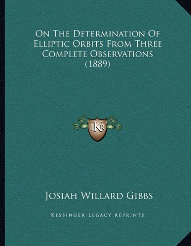 On The Determination Of Elliptic Orbits From Three Complete Observations is a scientific book written by Josiah Willard Gibbs and published in 1889. The book focuses on the mathematical principles and methods used to determine the elliptical orbits of celestial bodies based on three complete observations. Gibbs, who was a renowned American physicist and mathematician, provides a detailed analysis of the mathematical equations and formulas used in the determination of elliptic orbits. He also discusses the practical applications of these calculations in the field of astronomy and space exploration. This book is considered a seminal work in the field of celestial mechanics and is an important contribution to the scientific literature of the late 19th century. It is a valuable resource for students, researchers, and professionals in the fields of physics, mathematics, and astronomy.This scarce antiquarian book is a facsimile reprint of the old original and may contain some imperfections such as library marks and notations. Because we believe this work is culturally important, we have made it available as part of our commitment for protecting, preserving, and promoting the world's literature in affordable, high quality, modern editions, that are true to their original work.