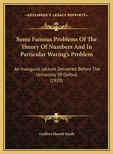 Some Famous Problems Of The Theory Of Numbers And In Particular Waring's Problem: An Inaugural Lecture Delivered Before The University Of Oxford