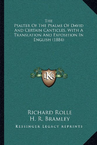 The Psalter of the Psalms of David and Certain Canticles, with a Translation and Exposition in English, is a book written by Richard Rolle and published in 1884. The book contains a collection of psalms and canticles from the Bible, translated into English for the benefit of readers who may not be familiar with the original Hebrew text. In addition to the translations, the book also includes an exposition of each psalm and canticle, providing readers with a deeper understanding of the meaning and significance of these ancient texts. The exposition is written in a clear and accessible style, making it easy for readers to follow along and engage with the material. Overall, The Psalter of the Psalms of David and Certain Canticles is a valuable resource for anyone interested in exploring the rich spiritual tradition of the Bible. Whether you are a scholar, a religious leader, or simply a curious reader, this book offers a wealth of insights and wisdom that can help you deepen your understanding of the Bible and its teachings.This scarce antiquarian book is a facsimile reprint of the old original and may contain some imperfections such as library marks and notations. Because we believe this work is culturally important, we have made it available as part of our commitment for protecting, preserving, and promoting the world's literature in affordable, high quality, modern editions, that are true to their original work.