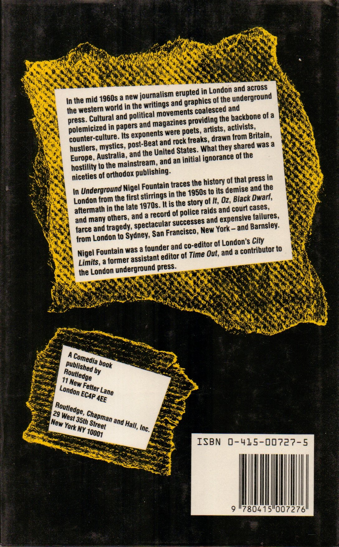 Nigel Fountain was a contributor to the London alternative press in the late 1960s and early 1970s, and two decades later he looked back on this historic scene in this highly detailed history, with an enormous amount of information in its mere 231 pages.