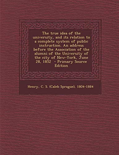The true idea of the university, and its relation to a complete system of public instruction. An address before the Association of the alumni of the University of the city of New-York, June 28, 1852
