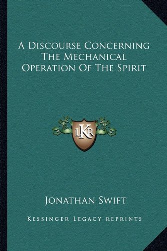 A Discourse Concerning The Mechanical Operation Of The Spirit is a philosophical work by Jonathan Swift, an Irish author and satirist. The book explores the nature of the human spirit and its relationship with the physical world. Swift argues that the spirit operates in a mechanical way and that it is subject to the laws of physics and mechanics. He also discusses the limitations of human understanding and the role of faith in understanding the workings of the universe. The book is written in Swift's characteristic style, which is both witty and insightful, and it is considered to be one of his most important works of philosophy. Overall, A Discourse Concerning The Mechanical Operation Of The Spirit is a thought-provoking exploration of the nature of human existence and the mysteries of the universe.THIS 28 PAGE ARTICLE WAS EXTRACTED FROM THE The Tale of a Tub and Other Works, by Jonathan Swift. To purchase the entire book, please order ISBN 1417914122.This scarce antiquarian book is a facsimile reprint of the old original and may contain some imperfections such as library marks and notations. Because we believe this work is culturally important, we have made it available as part of our commitment for protecting, preserving, and promoting the world's literature in affordable, high quality, modern editions, that are true to their original work.