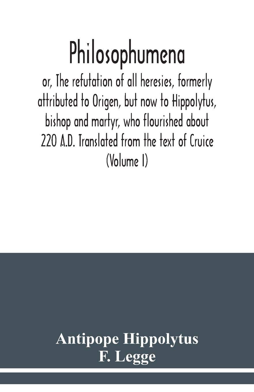 Philosophumena; or, The refutation of all heresies, formerly attributed to Origen, but now to Hippolytus, bishop and martyr, who flourished about 220 A.D. Translated from the text of Cruice