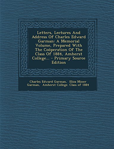 Letters, Lectures And Address Of Charles Edward A Memorial Volume, Prepared With The Coöperation Of The Class Of 1884, Amherst College