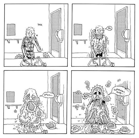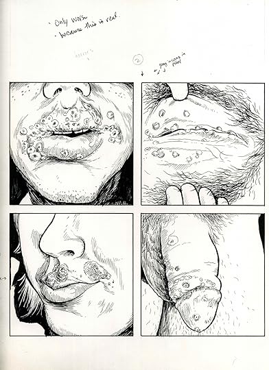 The medium chosen was well used. The author wants the reader to feel uncomfortable at times, with the graphic representations of the disease's manifestations- in order to understand his initial discomfort regarding the situation. Which some might say is a gimmick, but whatever, I think it worked. What I liked about this book was the various comic techniques and styles used throughout the book, and the depiction of the struggle faced by a man who lost his sense of human-ness, not to mention a girlfriend. This is something a lot of people fear, and for good reason. The stigmas attached to this kind of thing are no joke, but Dahl manages to make this book really humorous. I imagine it must have been liberating to create something so public about something he was felt was best to keep personal for so long, and for that, I'm glad this book exists.