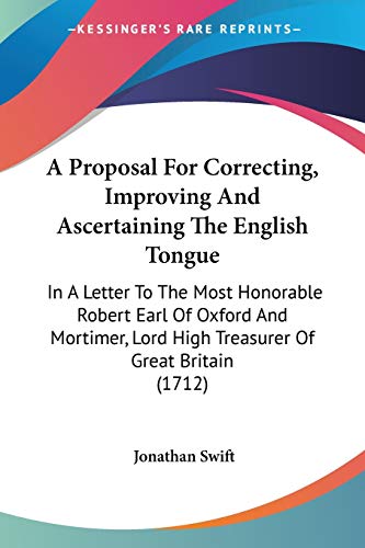 A Proposal For Correcting, Improving And Ascertaining The English Tongue: In A Letter To The Most Honorable Robert Earl Of Oxford And Mortimer, Lord High Treasurer Of Great Britain