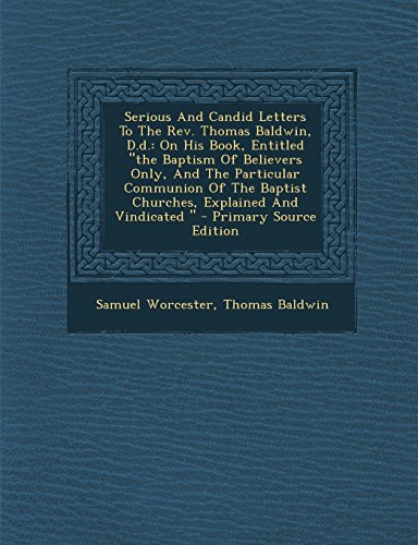 Serious And Candid Letters To The Rev. Thomas Baldwin, On His Book, Entitled "The Baptism Of Believers Only, And The Particular Communion Of The Baptist Churches, Explained And Vindicated "; Issue 14240 Of Early American Imprints