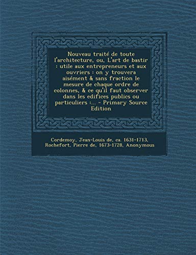 Nouveau traité de toute l'architecture, ou, L'art de bastir: utile aux entrepreneurs et aux ouvriers : on y trouvera aisément & sans fraction le ... ou particuliers :... -